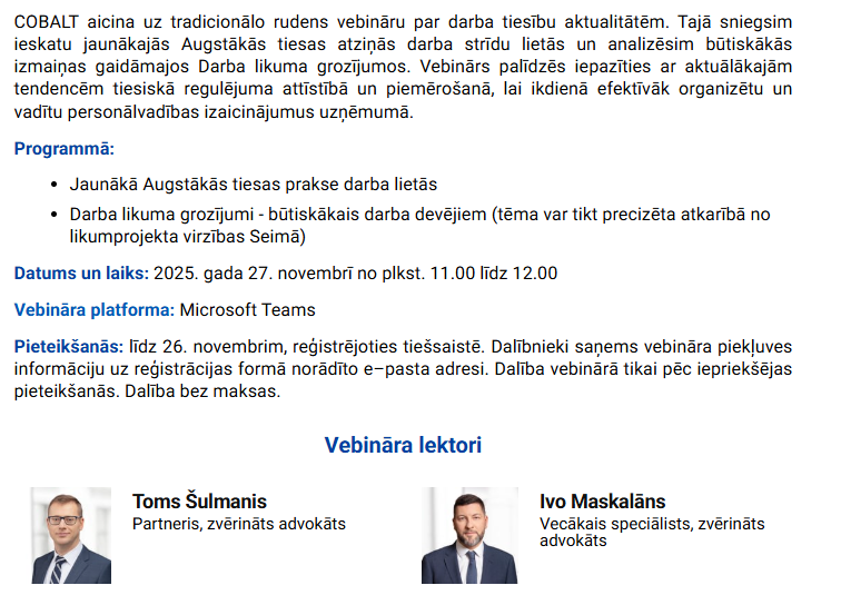Vebināra ietvaros tiks pārrunātas sekojošās tēmas: